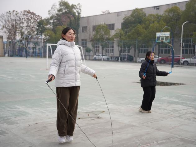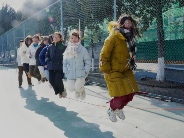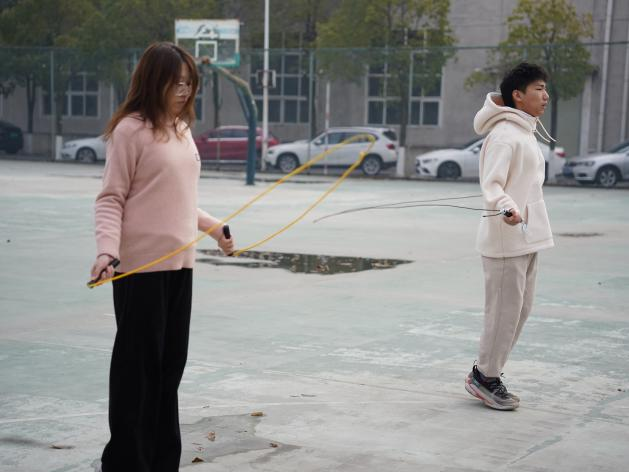 首先进行的是19日的集体跳绳比赛。各班之间可以自由组队,每个队伍派出十名同学参赛,其中八名同学跳绳,两名同学摇绳,每队最终成绩为八人同时起跳的总次数。在三分钟的比赛里,同学们互相配合,齐心协力,现场比赛氛围十分火热。
