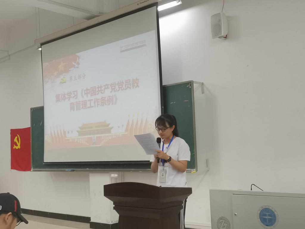 党建办公室部员带领全体党员集体学习《中国共产党党员教育工作管理条例》,对党员教育管理的重要意义、遵循的基本原则、基本任务、主要方式及党籍和党员关系、党员监督和组织处置等《条例》内容做了原原本本的学习。