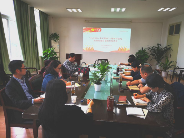 “不忘初心、牢记使命”主题教育活动检视问题征求意见座谈会在学院1209会议室召开,学院领导班子成员、各各党支部书记、师生代表参加了本次会议,座谈会由学院党委书记郭秀蓉主持。