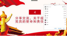 会议第四项:分享交流,关于疫情防控,党员的使命和责任。