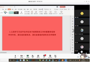 1.楼丹同志带领大家认真学习习近平总书记关于疫情防控工作的重要讲话和中共中央、湖北省纪委机关、湖北省委组织部有关文件精神。